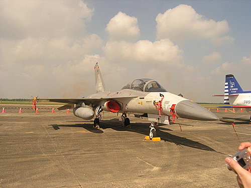 下面這台,機面上有寫"經國",應該就是經國號戰鬥機了,它應該算是"阿祖"級的啦